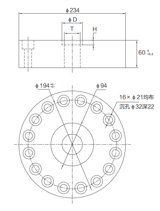 型號(hào) | 量程(kN) | 量程(t) | D | T | H |