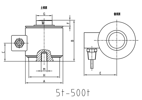 型號(hào) | 量程(kN) | 量程(t) | A | B | C | E | F | G | H | SR | Minch | Mmm | MDP |